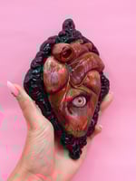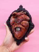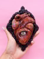 This surreal anatomical heart sculpture features a single, realistic eye ā a symbol of vision, emotion, and soul. Handmade in polymer clay, it blends pop surrealism and dark romanticism. A perfect gift for collectors of weird, emotional, and symbolic art.